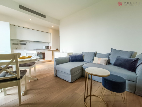 L’immobile si compone di un ampio ingresso, un soggiorno con affaccio su un lungo balcone – cucina abitabile separata – due camere da letto di cui una su veranda chiusa da pareti mobili e un bagno.